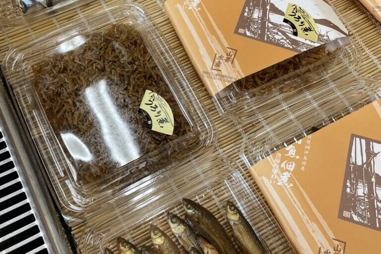 「山甚水産直売所」では、琵琶湖の恵みをたっぷりと詰め込んだ自家製の名産品を豊富に取り揃えています。